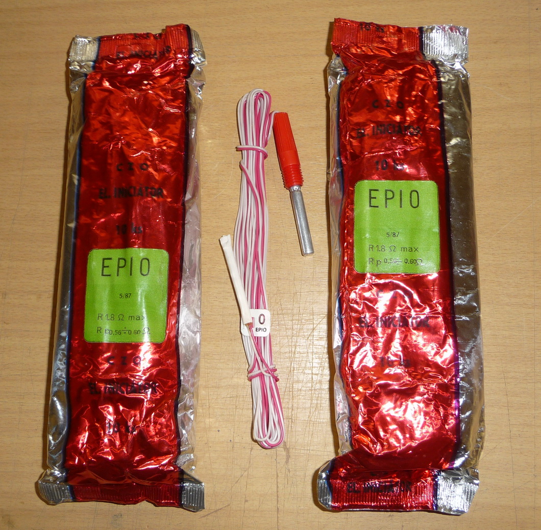 EPID - dlouhodobý, tvořený sadou 59 kusů se zpožděním odstupňovaným po 5s. Barva šroubení šedá, vodiče modrá/žlutá