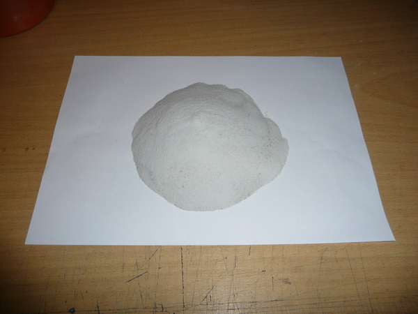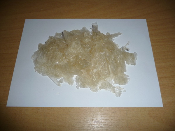 Ukázka drcení v kulovém mlýnu. Povařený a usušený rýžový škrob před mletím a po cca 3 hodinách mletí.