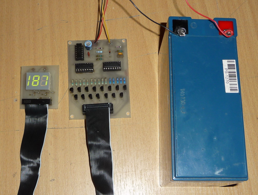 Připojení na zdroj a testování počítadla. Počítá od 0 do 199, což nám na 160 odpalů bude zajisté stačit.
