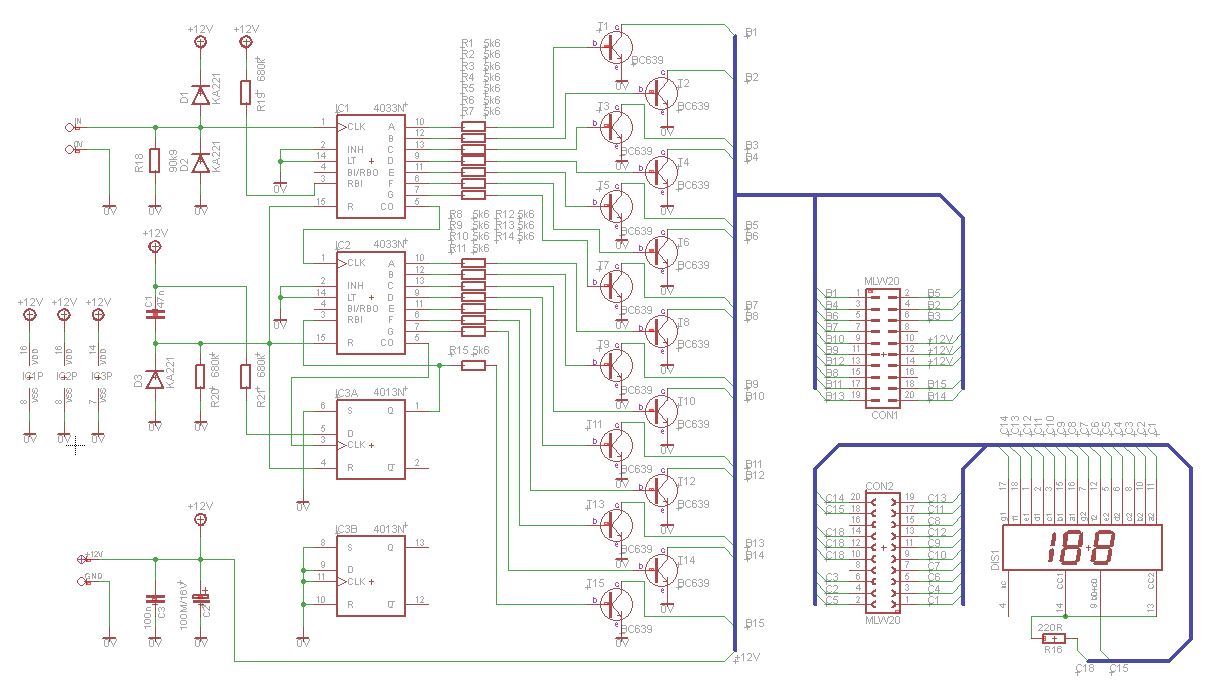 Stávající dvoumístné počítadlo odpalů (80) bylo nutné nahradit trojmístným, proto zde přidávám několik fotografií z přípravy. Počítadlo je vlastní výrobek. Schéma a tištěný spoj byl navržen v programu Eagle.