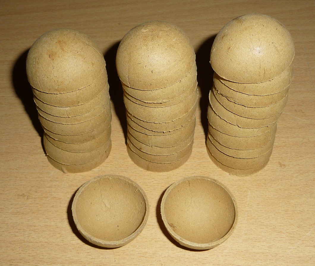 Na výrobu kulových pum se používají papírové polokoule do kterých se později vkládají zpožďovače, světlice, výmetná, trhací slož atd. Zde Vám na několika fotografiích ukážeme polokoule pro výrobu kulových pum trochu z blízka.