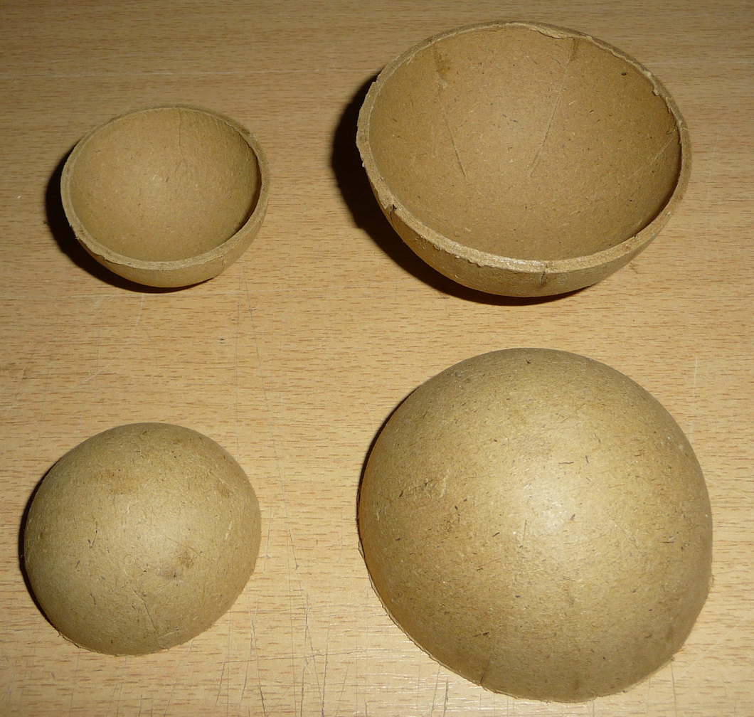 papírové polokoule 4" (100mm) zde již s otvory pro vložení zpožďovačů