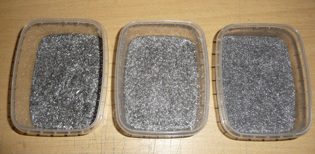 Na některé měkší materiály lze využít i mlýnek na mák, je to ovšem pořádná fuška, zato máme uspokojivý výsledek v podobě jemných pilin 60-80 mesh, mletím vícekrát lze docílit i jemný prášek o velikosti 100 mesh.