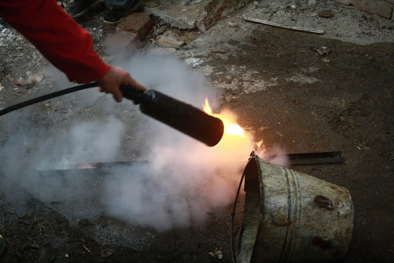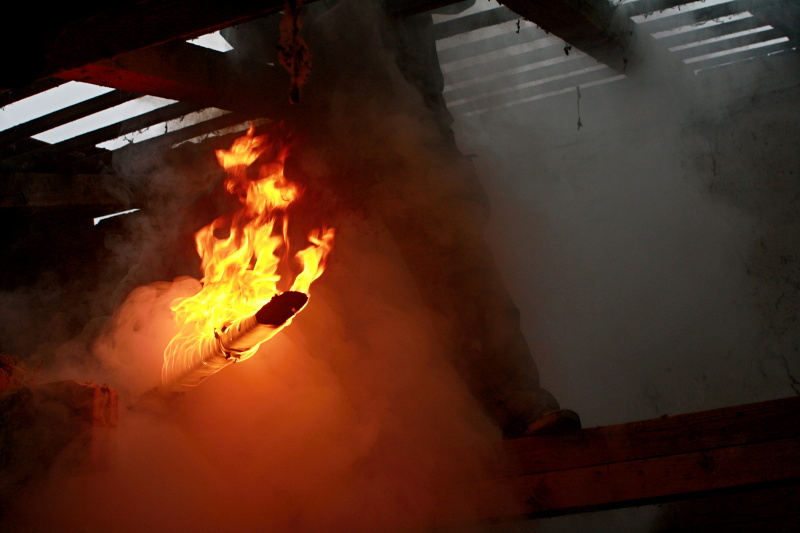 Ukázka z natáčení - hašení hořící slámy