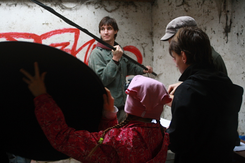 Mikrofonista je nachystán, režisér s asistentem zřejmě dává poslední pokyny