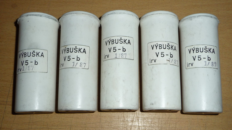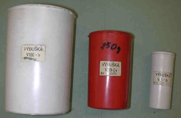 Ilustrační foto zásahových výbušek, kulových pum a starších typů vojenských výbušek V5, V30, V100